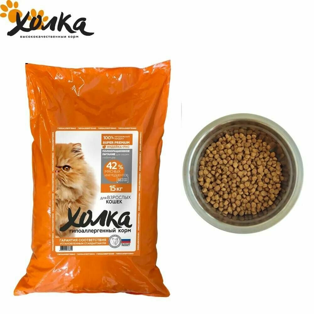 Корм для кошек сухой 42% мяса Холка, гипоаллергенный, индейка рис, 15 кг