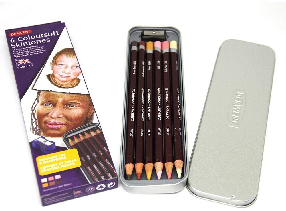 Цветные карандаши Derwent Набор цветных карандашей Coloursoft 6 цветов: оттенки кожи интересное: