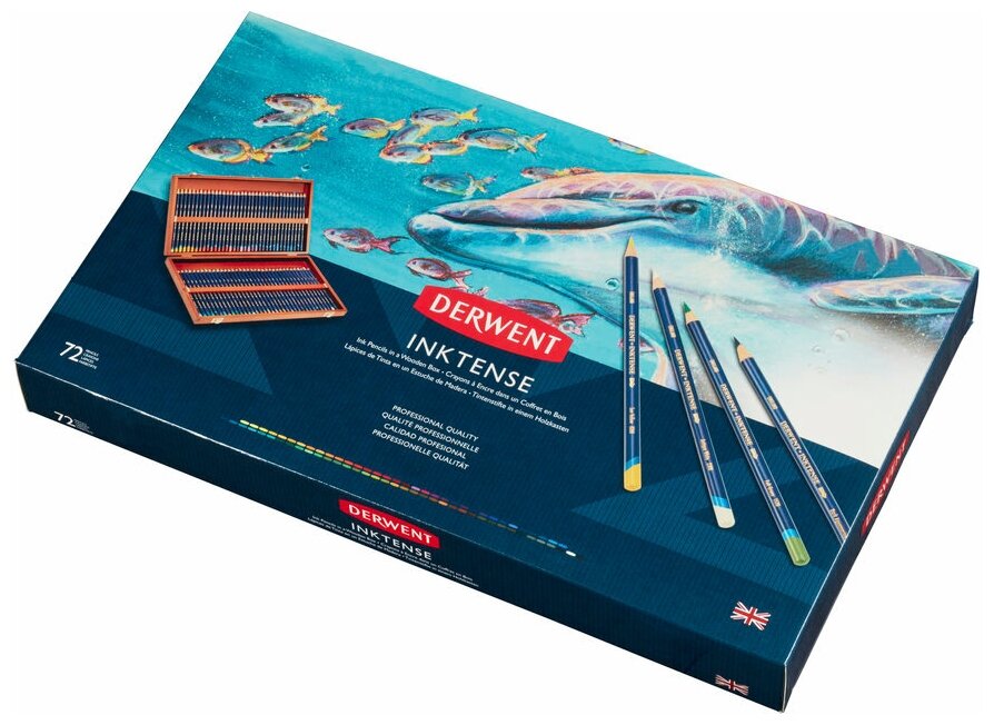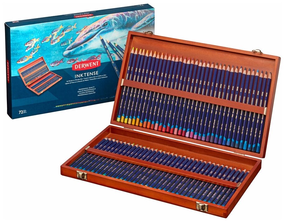 Набор цветных акварельных карандашей DERWENT INKTENSE, 72 цвета В деревянной коробке