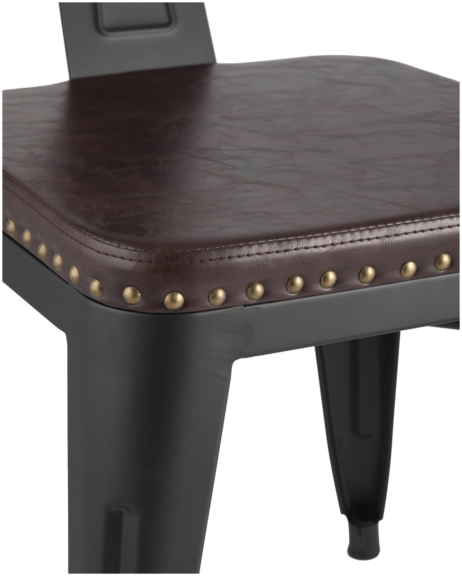 Стул Tolix ARMS SOFT STOOL GROUP коричневый, экокожа, металл, мягкое сиденье, с подлокотниками