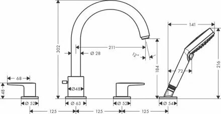 Купить Смеситель на край ванны Hansgrohe Vernis Blend 71456670 черный