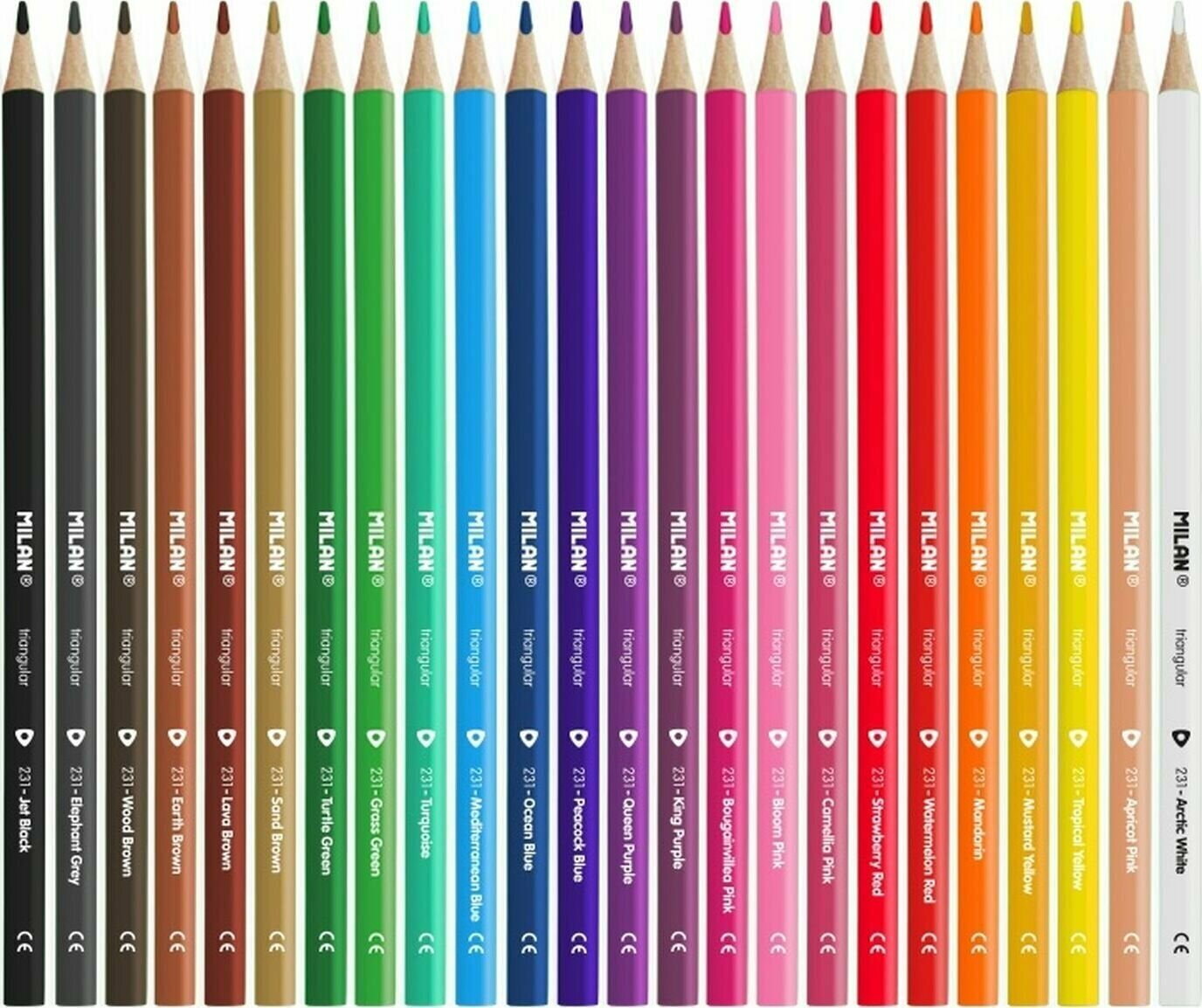 Карандаши цветные Milan, трехгранные, толщина грифеля 2,9 мм, набор 24 цвета