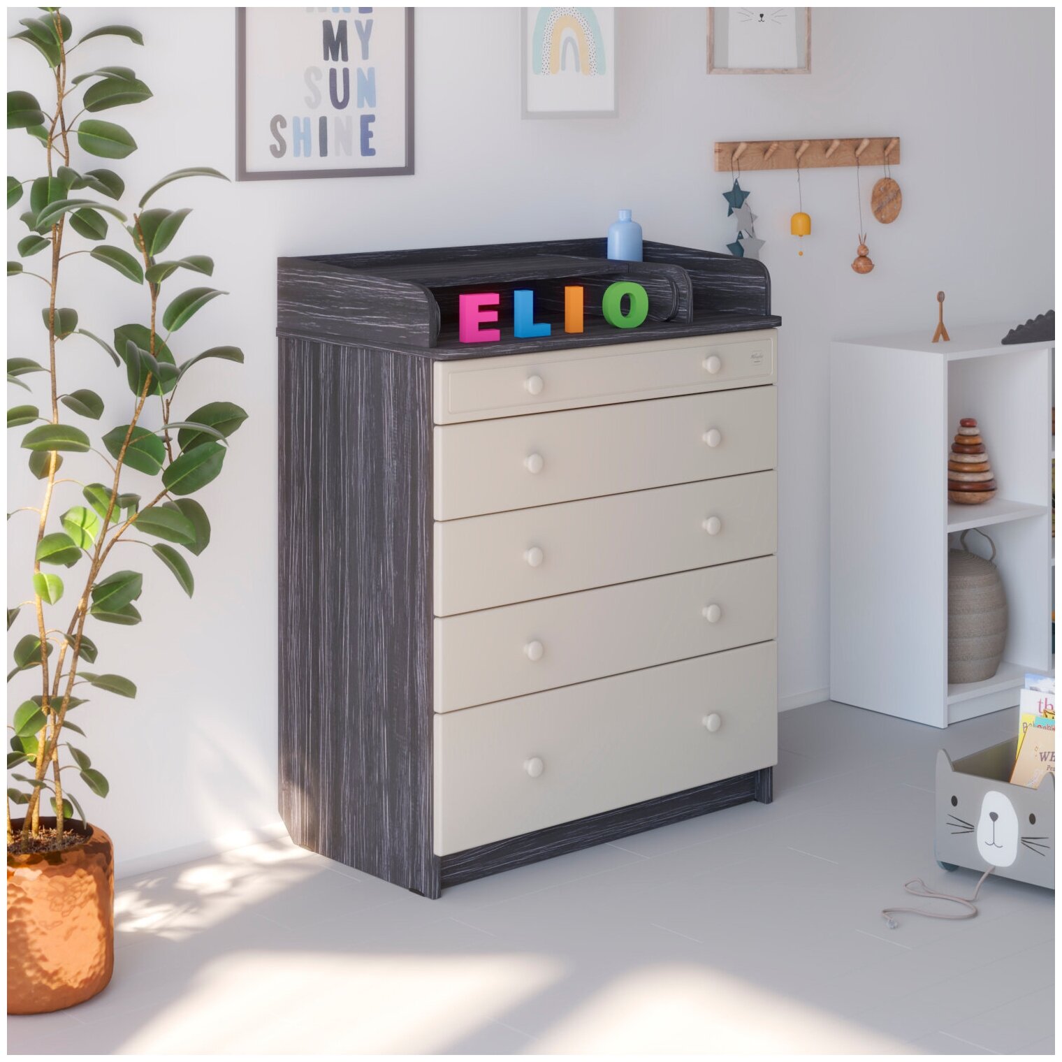 Комод пеленальный Сириус-2 Elio древесина графит - белый