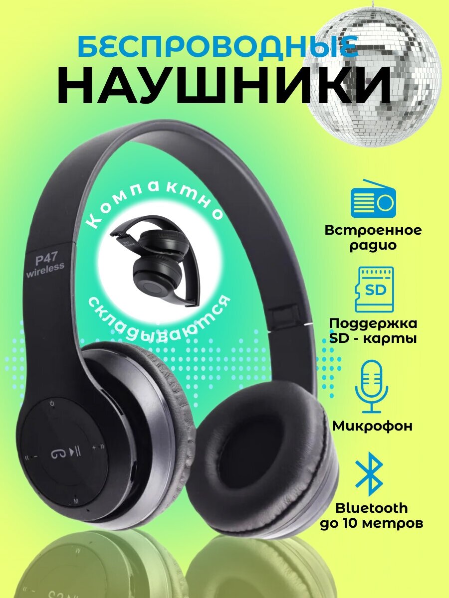 Беспроводные наушники накладные P47 Multi, черный / Bluetooth наушники / Наушники с микрофоном