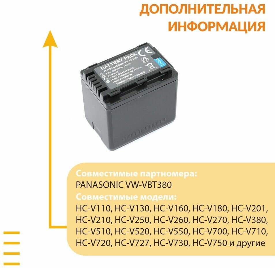 Аккумуляторная батарея для видеокамеры Panasonic HC-V110 (VW-VBT380) 3.6V 3900mAh Li-ion интересное: