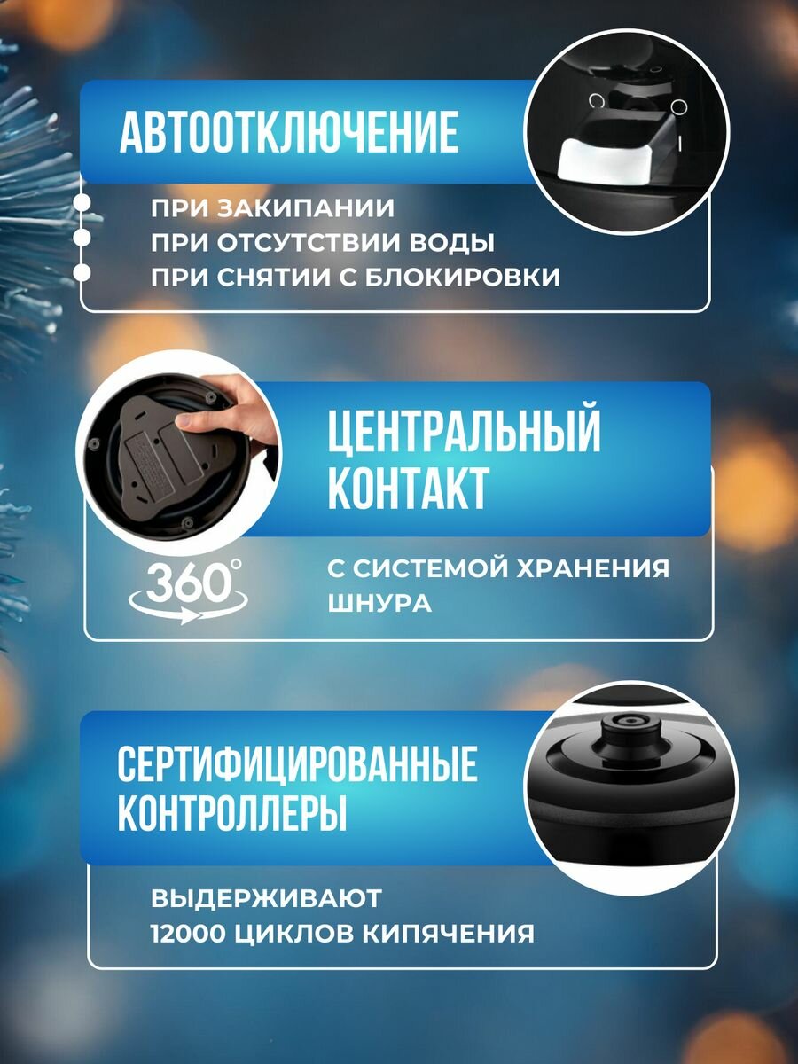 | Безопасность | блокировка включения без воды / отключение при снятии с подставки |