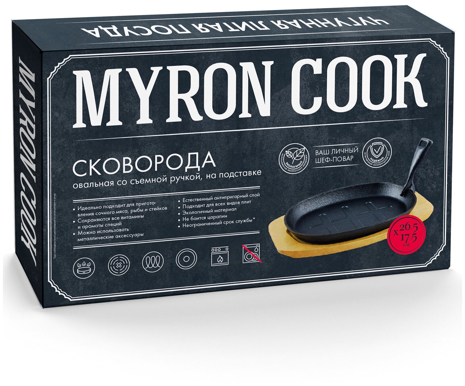 Сковорода MYRON COOK 26,5х17,5 см со съёмной ручкой на подставке интересное: