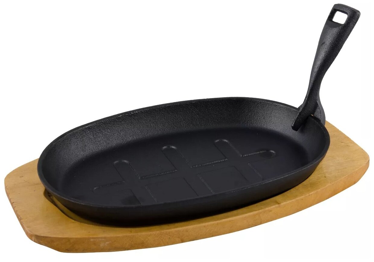 Сковорода чугунная со съемной ручкой 26,5х17,5см овальная на подставке TM MY REAL IRON COOK