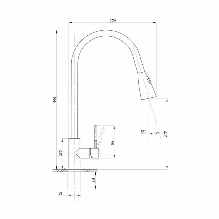 | Комплектация | смеситель с выдвижной лейкой, гайка крепежная, гибкая подводка 2 шт., паспорт |