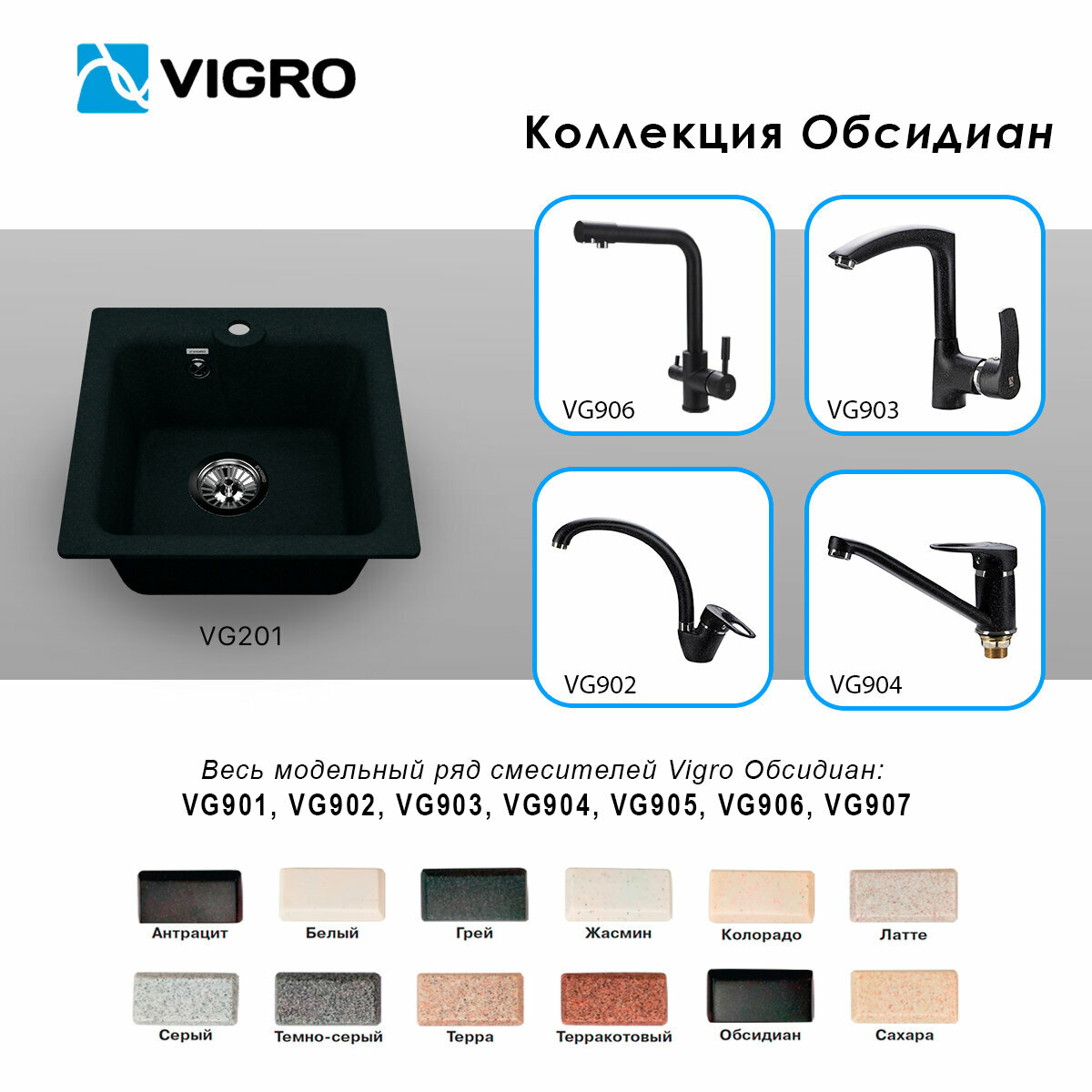 Купить Кухонная мойка VIGRO VG201 обсидиан(410*410*180)