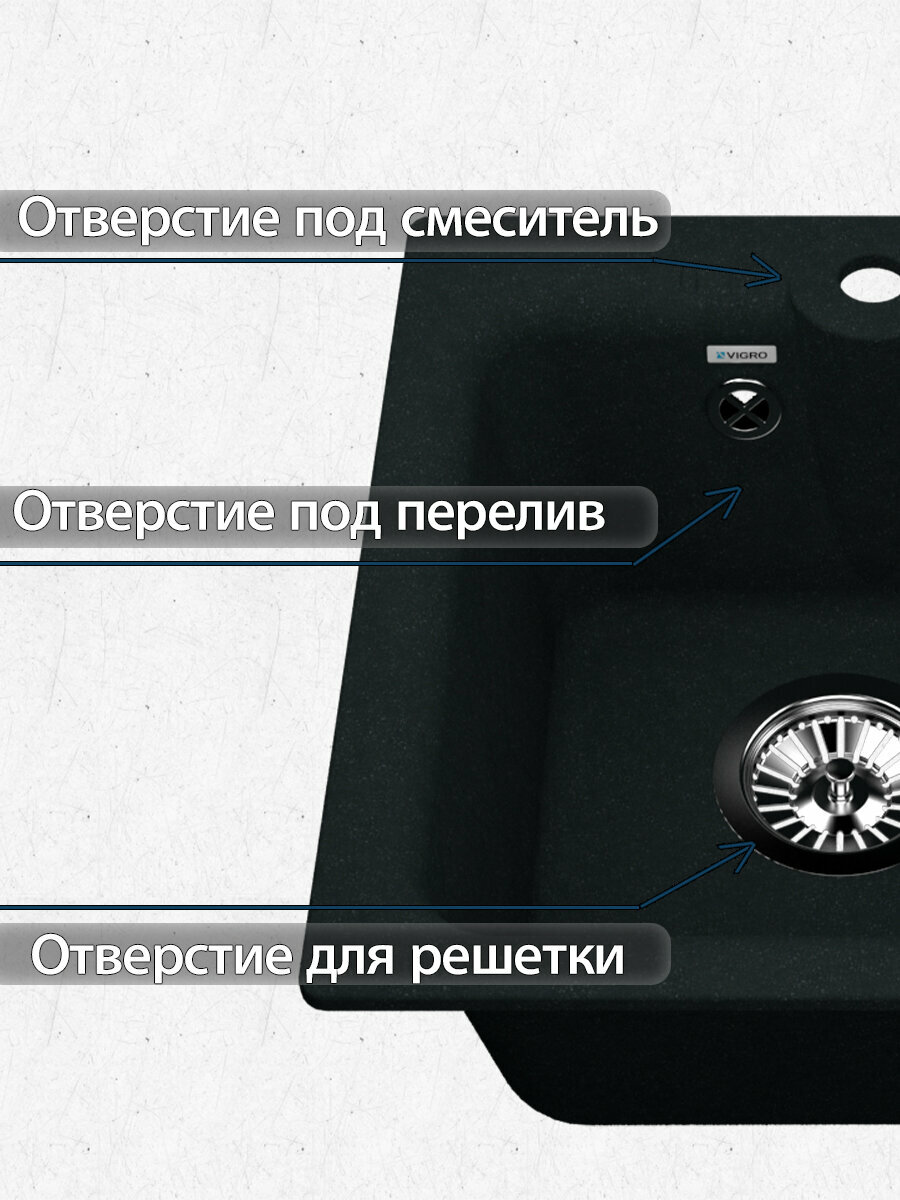 СохранитьКухонная мойка VIGRO VG201 обсидиан(410*410*180) интересное: