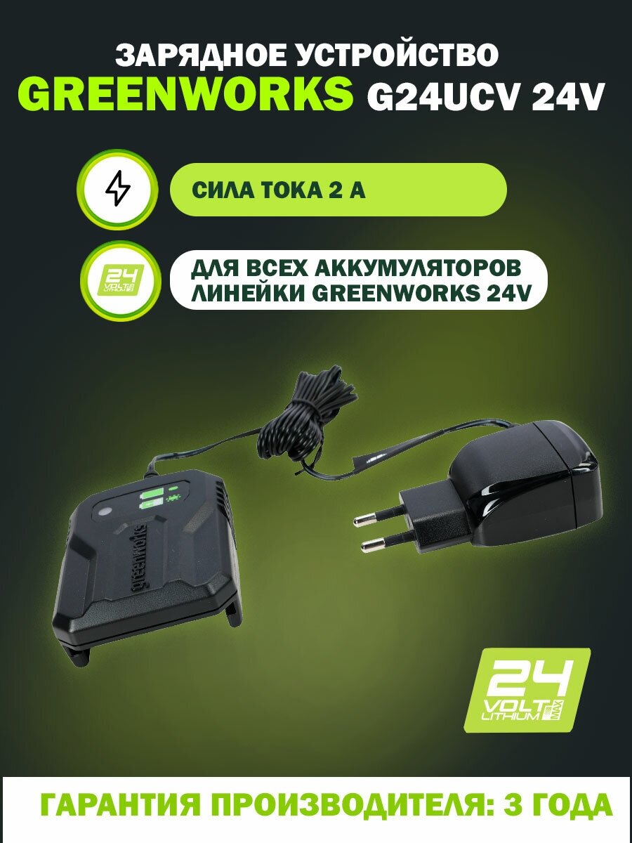Устройство зарядное Greenworks 24В G24UC2 2Ач 2946207 интересное: