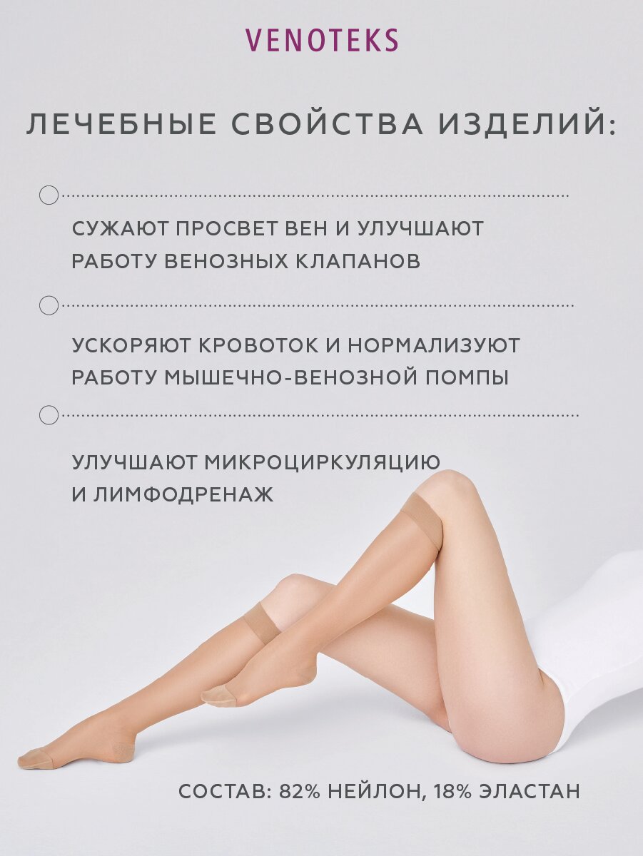 СохранитьГольфы VENOTEKS TREND женские тонкие прозрачные 1 класса компрессии 1C105, Бежевый, размер: XXL интересное: