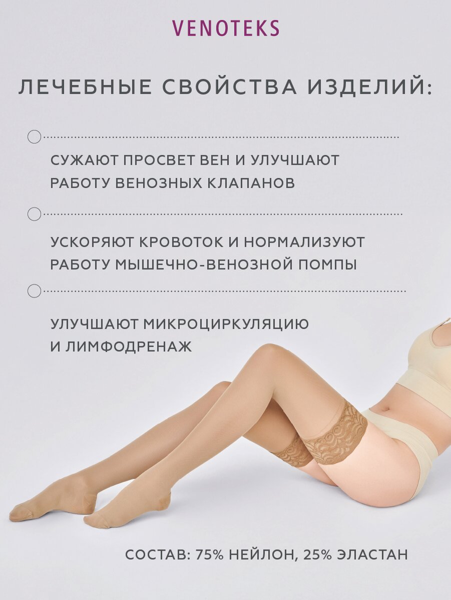 СохранитьVENOTEKS Х0054839 Компрессионные чулки VENOTEKS COMFORT 1C202 (1 класс, с микрофиброй) (L / Бежевый / Закрытый) интересное: