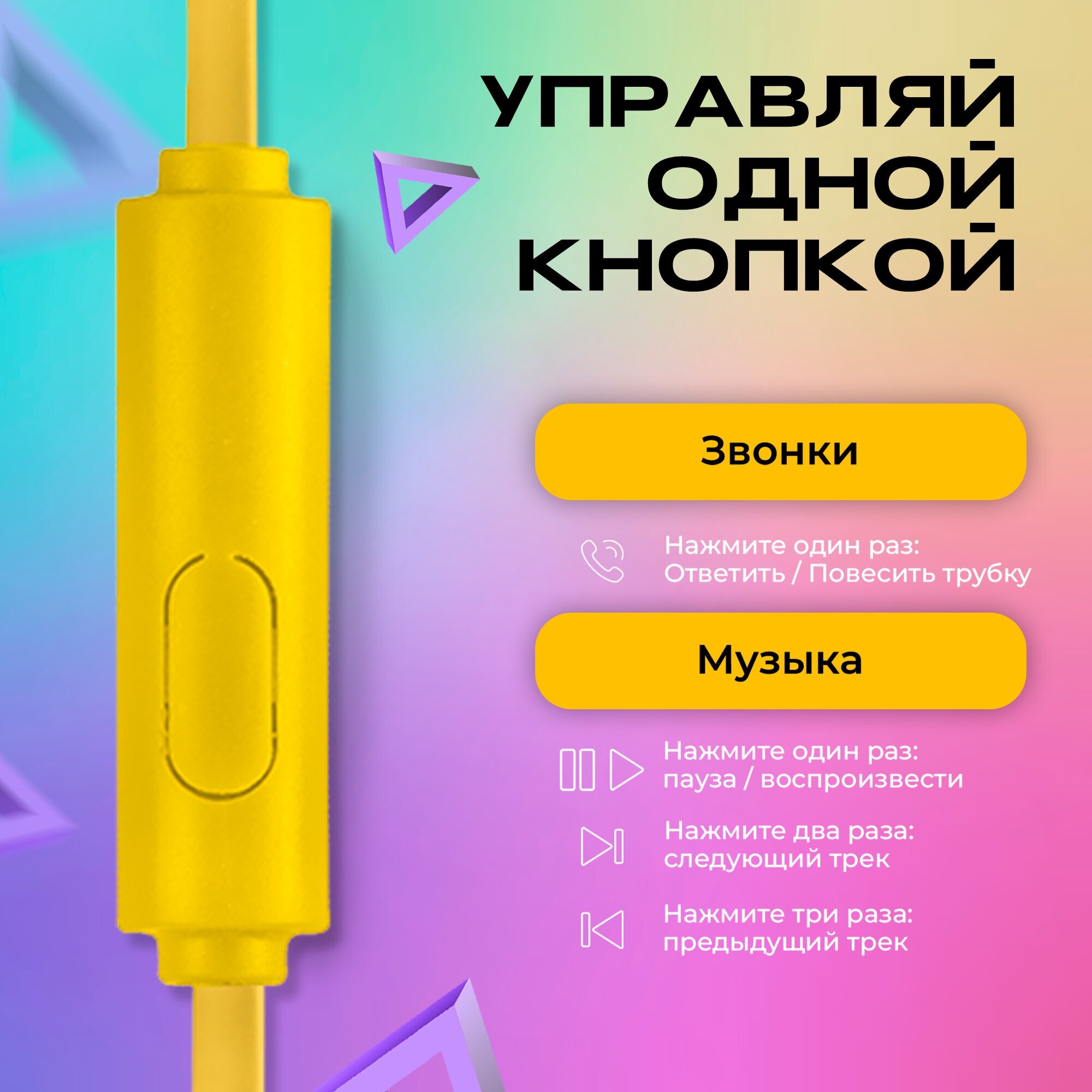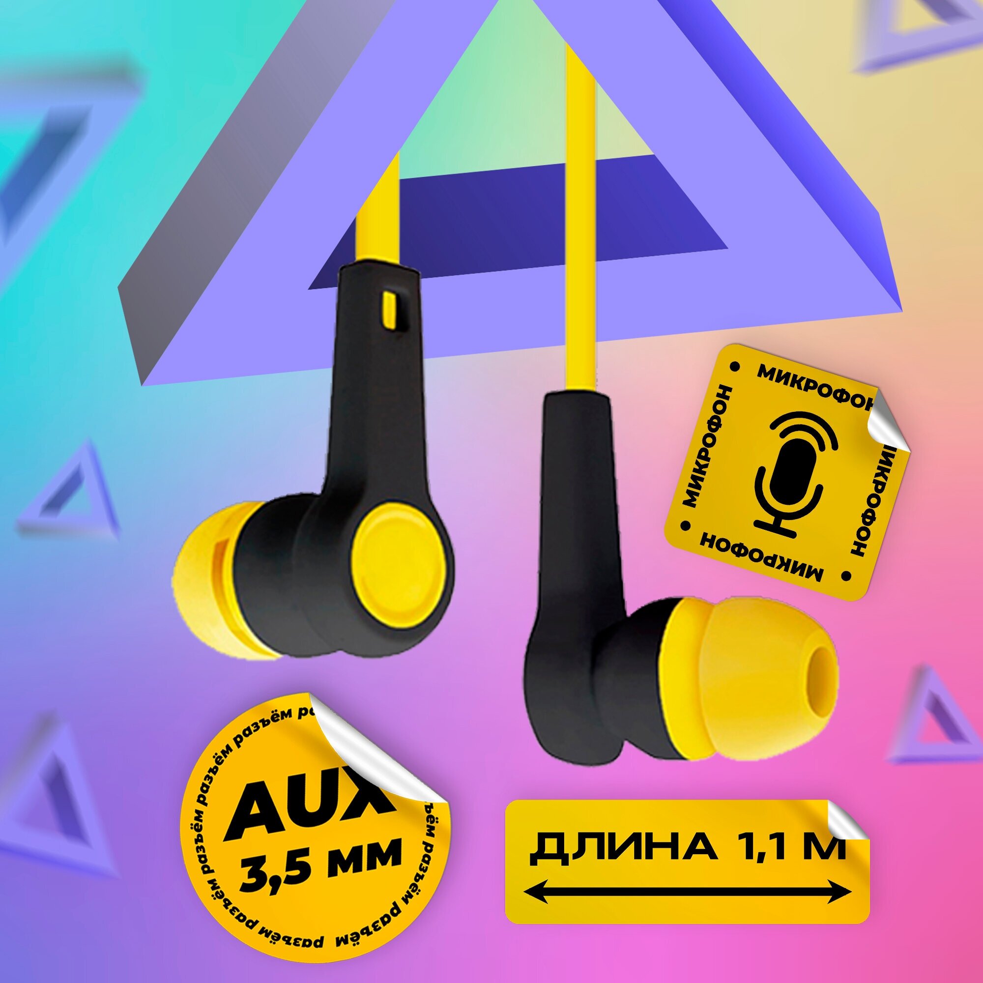 Наушники проводные WALKER H330, вакуумные, с микрофоном и кнопкой ответа, mini-jack 3.5mm, желтые / гарнитура для телефона для смартфона Android, для xiaomi redmi, для huawei, для honor, для samsung, наушники для бега и спорта