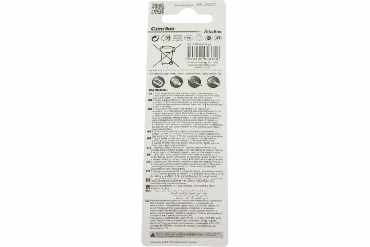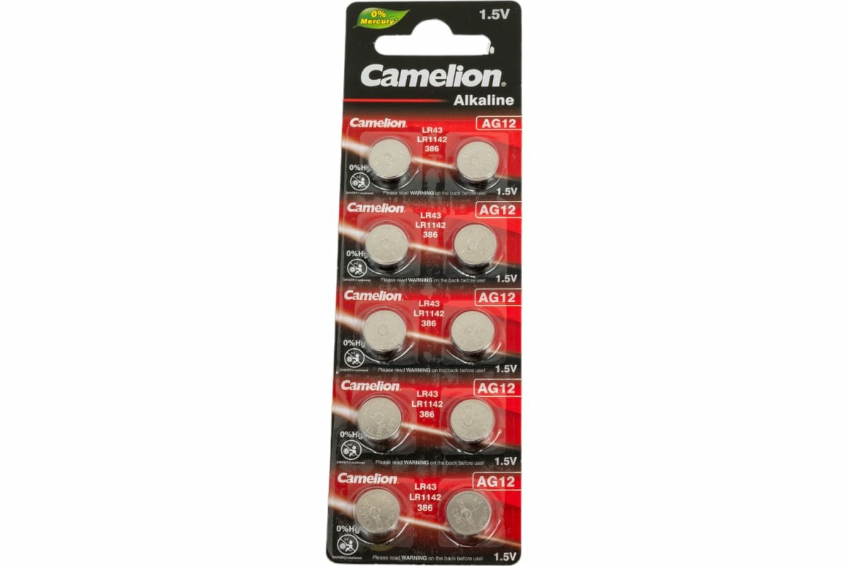 Купить Camelion Батарейка G12 BL-10 Mercury Free AG12-BP10 0%Hg , 386A LR43 186 батарейка для часов 10 шт. в уп-ке