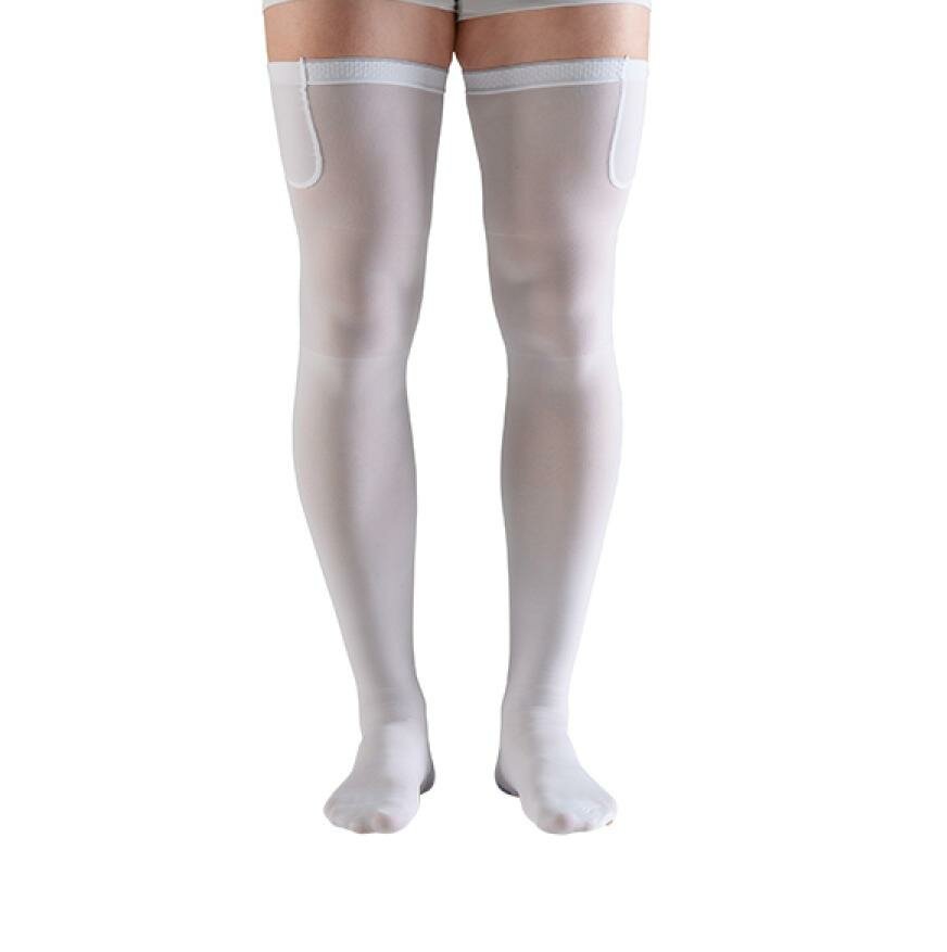 Противоэмболические чулки HOSPITAL THROMBO18 VENOTEKS 1A212 на широкое бедро, 1 класс, закрытый носок, белые, противоварикозные, Размер XL, белый