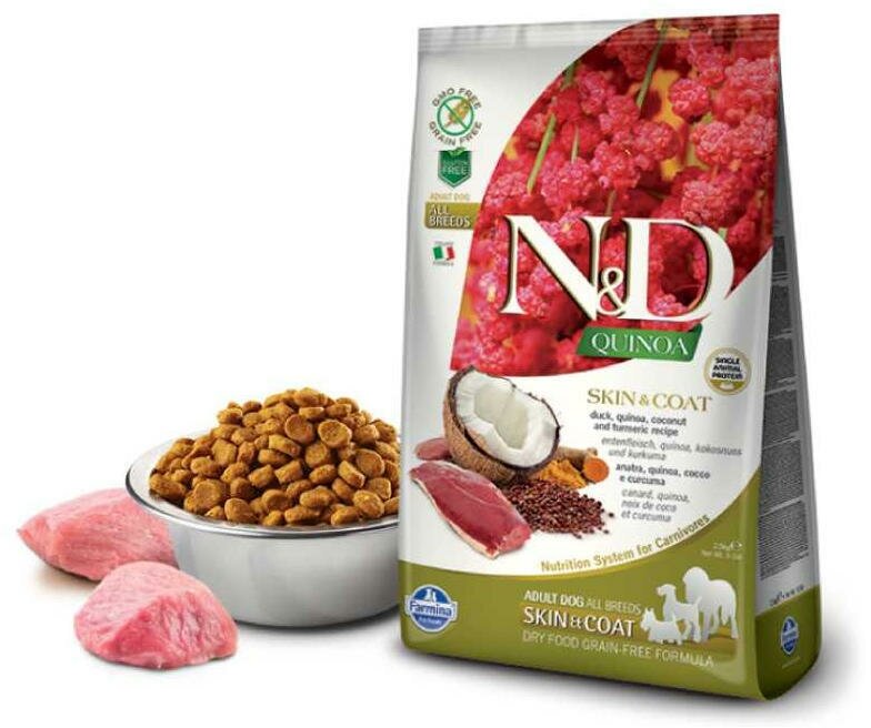 Сухой корм Farmina N&D Quinoa Skin Coat Duck, для взрослых собак всех пород, беззерновой, утка, киноа, кокос и куркума, 2,5кг