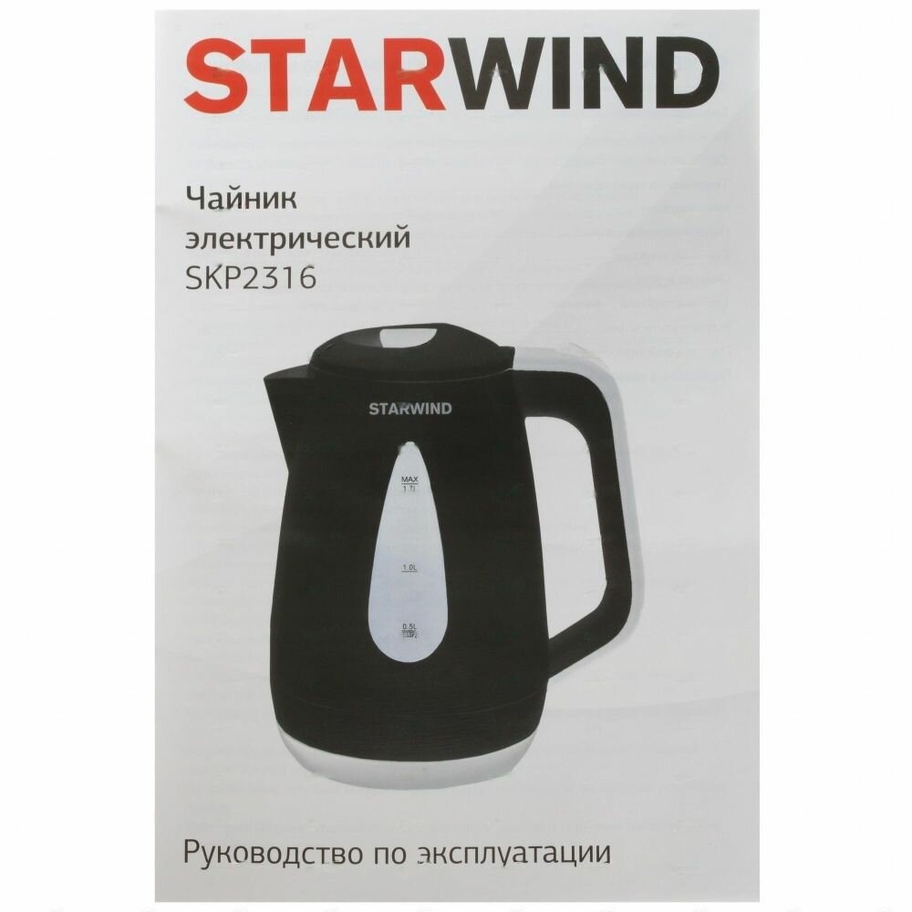 Электрочайник Starwind SKP2316 [пластик, 1.7 л, 2200 Вт, фильтр, скрытый нагревательный элемент, чер