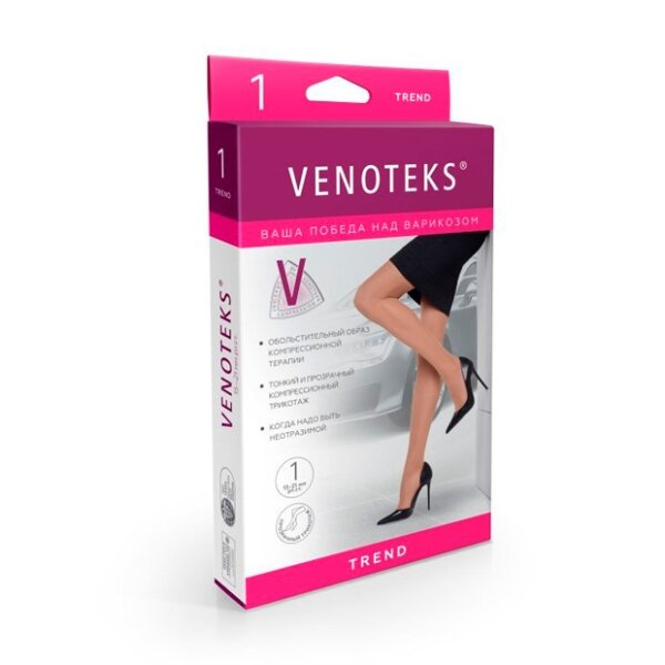 VENOTEKS Х0083884 Компрессионные чулки VENOTEKS TREND 1C205 (1 класс, прозрачные) (M / Удлиненная / Бежевый / Закрытый)