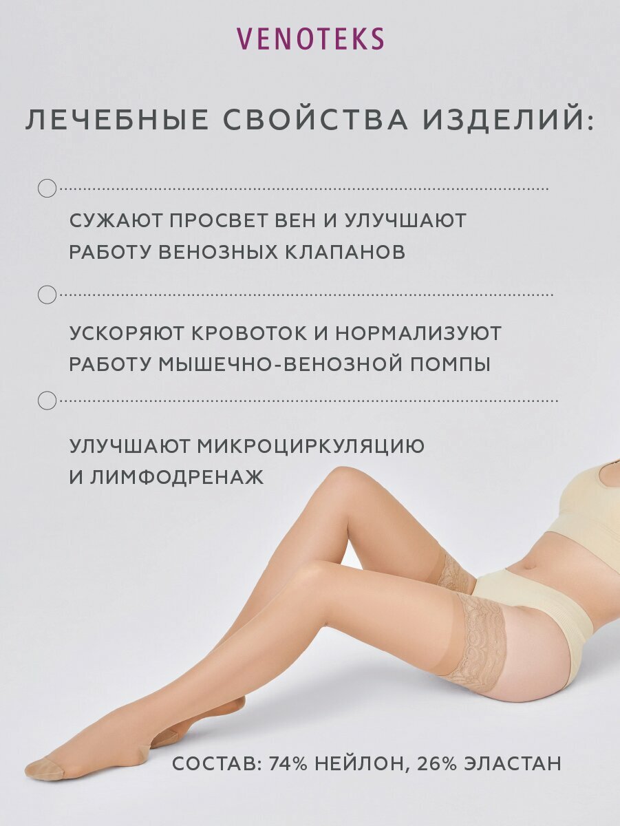 Чулки VENOTEKS TREND 1 класса компрессии 1C205, Удлиненное, Бежевый, XL