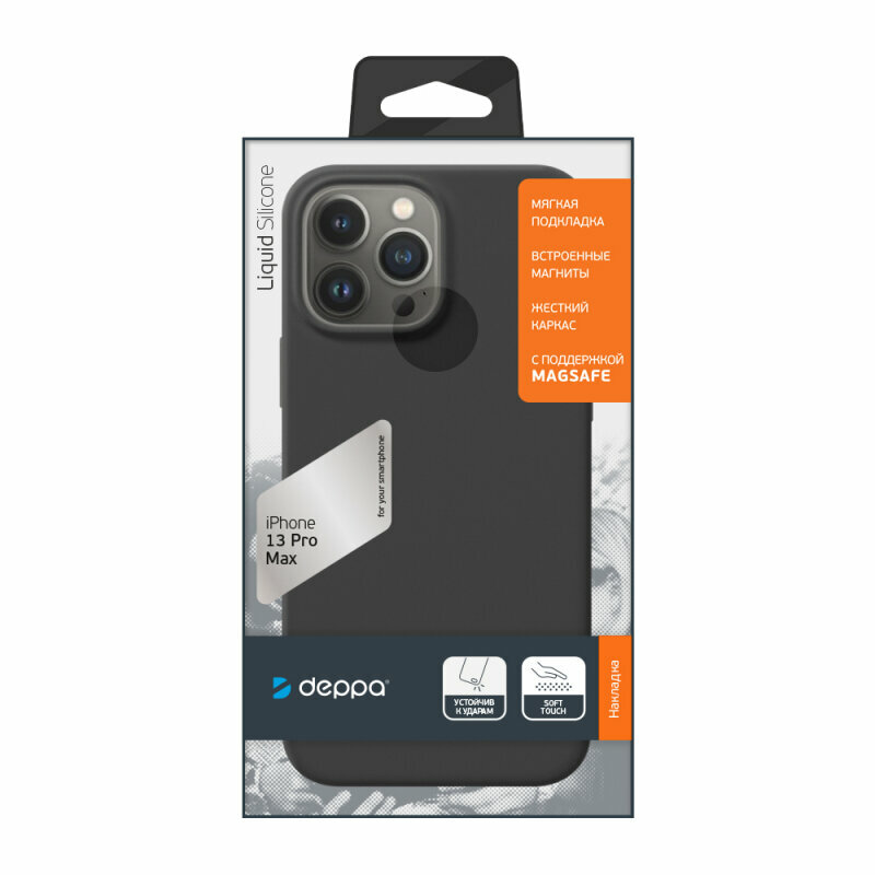 Чехол Deppa Liquid Silicone Pro Magsafe для Apple iPhone 13 Pro Max, черный, картон