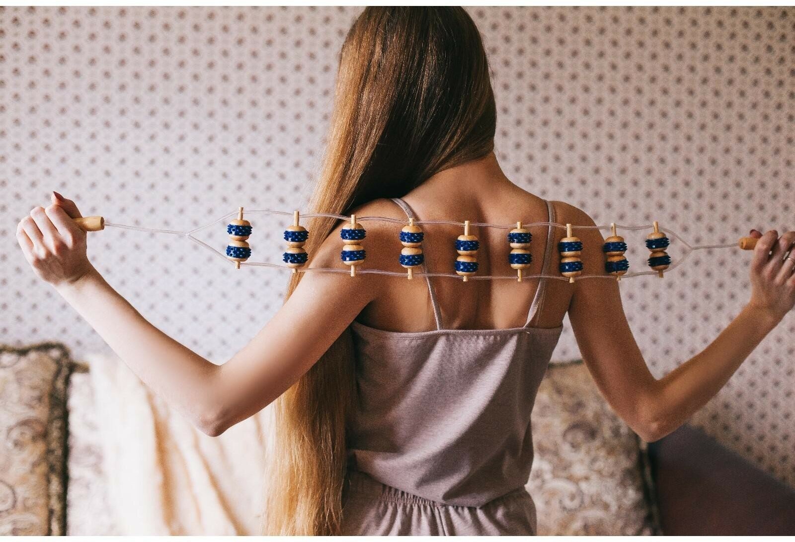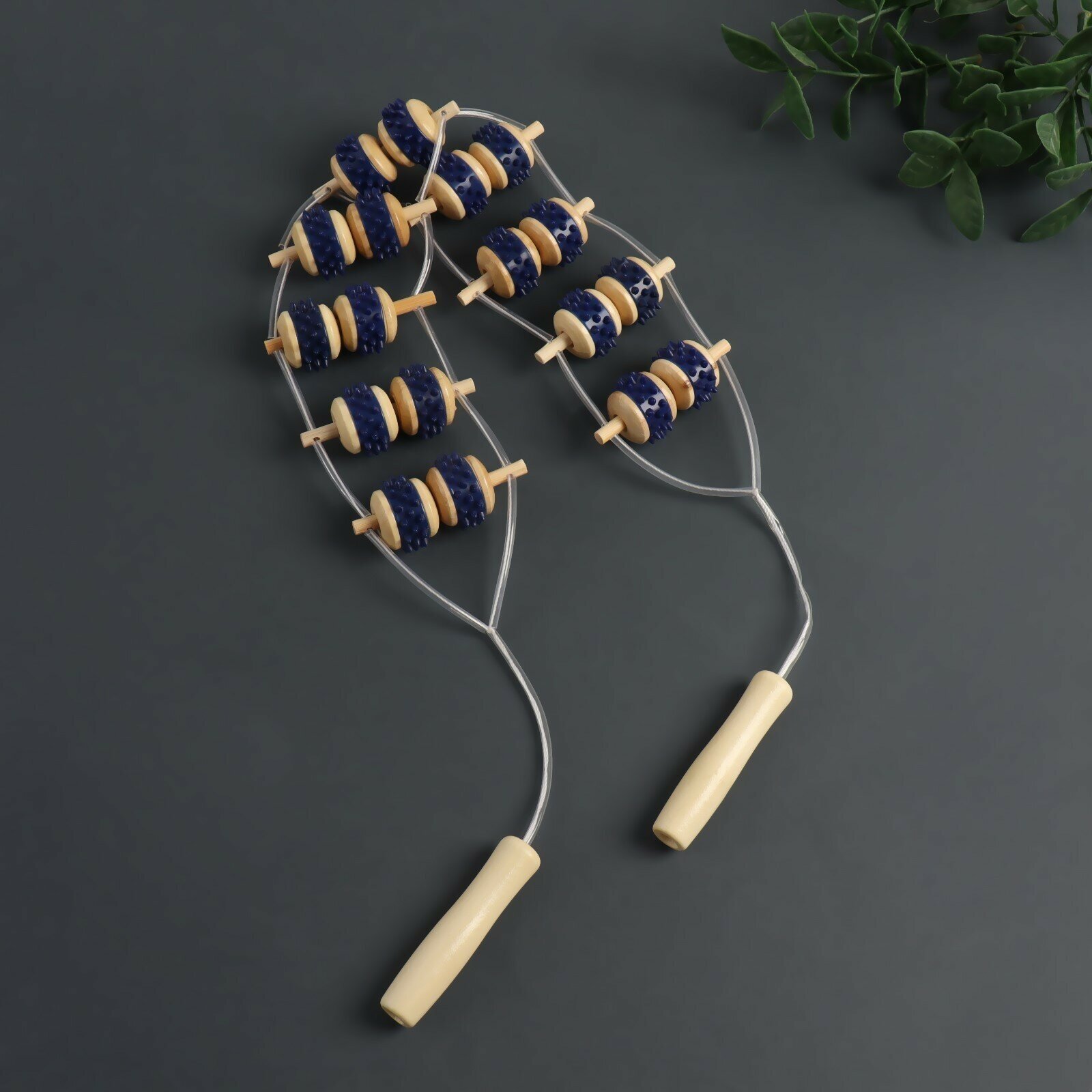 Массажёр-лента, 9 звеньев, деревянный, 84 × 7,5 × 3 см, цвет синий/бежевый