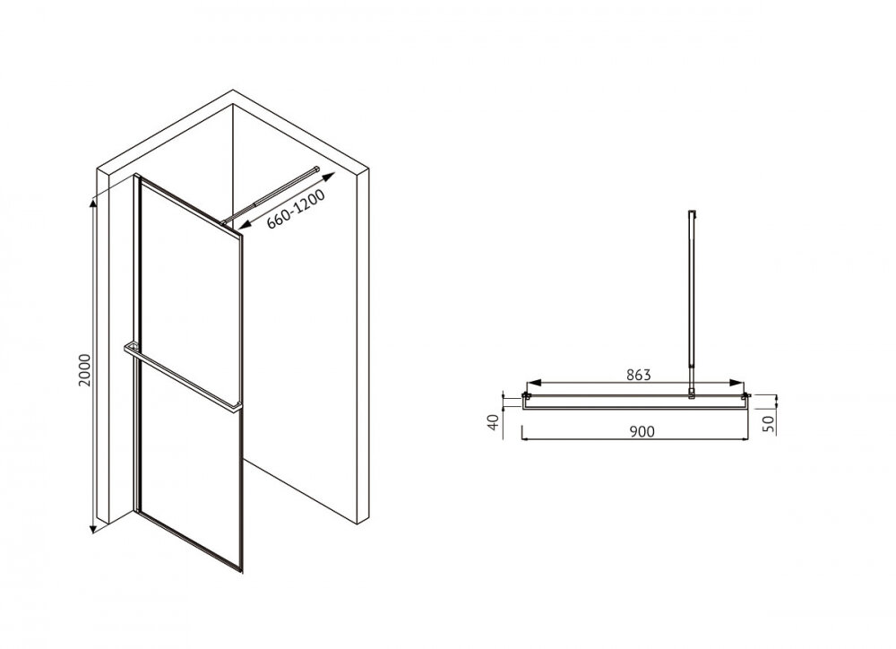 Душевая перегородка Abber Immer Offen AG60090B черный 90 см