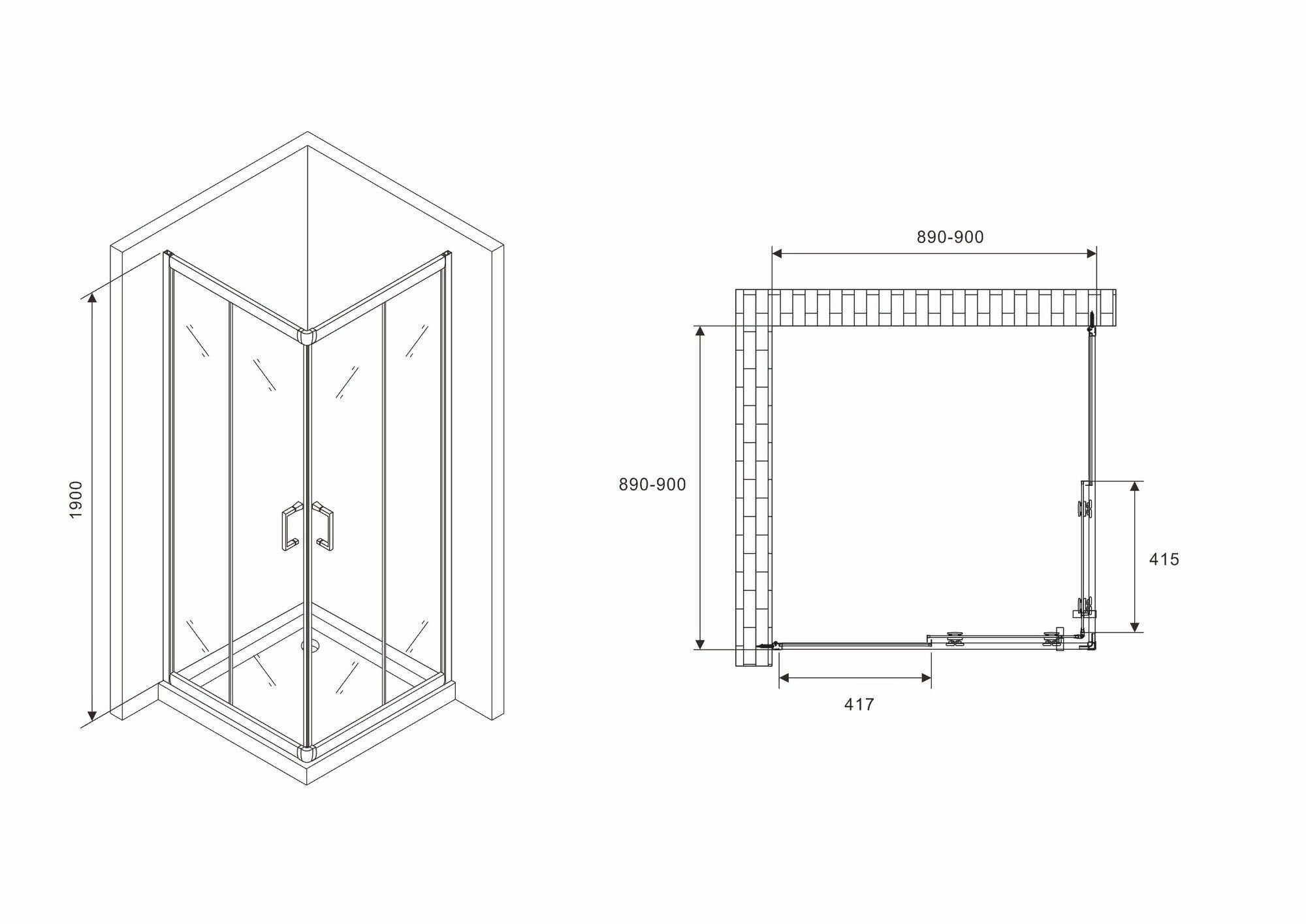 Душевой уголок Abber Schwarzer Diamant 900х900 мм (габариты площадки) AG02090B5