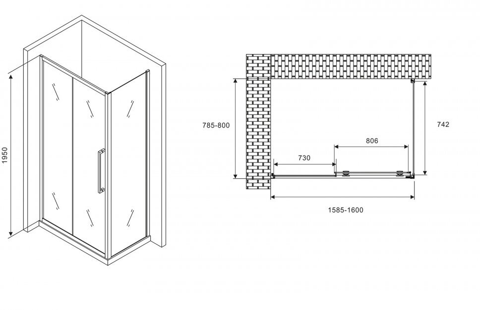 Душевой уголок Abber Schwarzer Diamant 160x80 AG30160H-S80 стекло прозрачное, профиль хром, без поддона