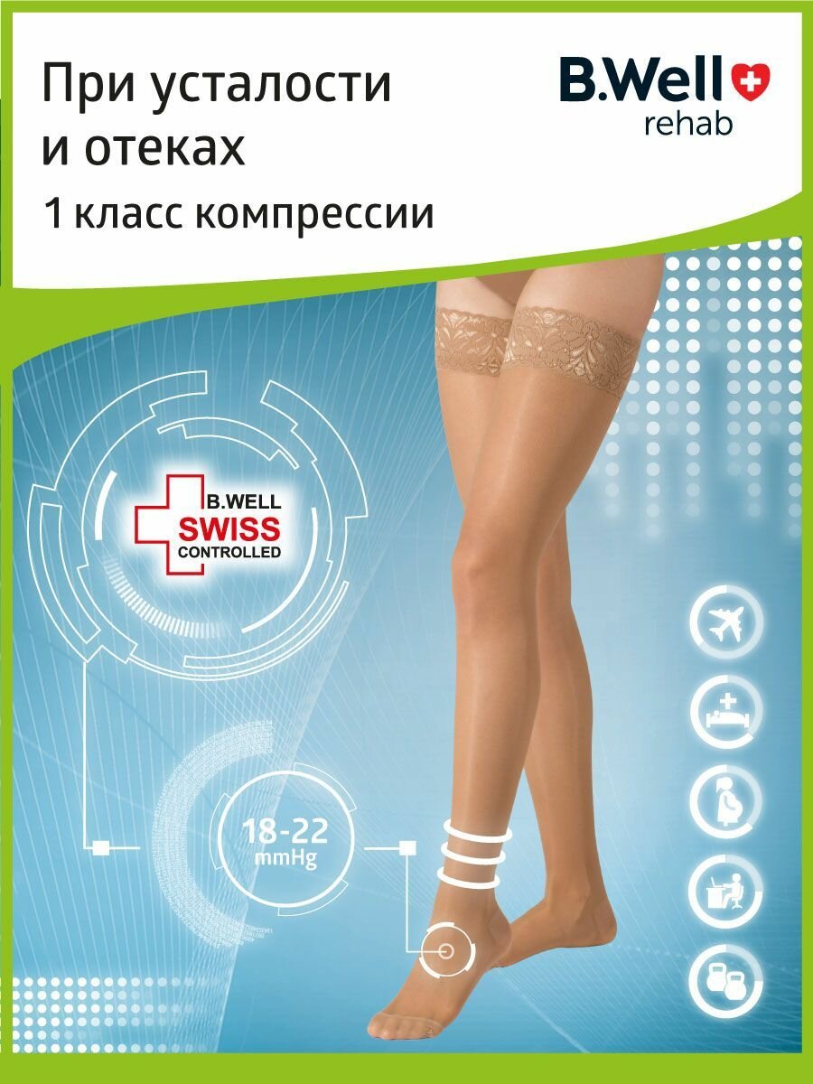 Чулки компрессионные B.Well, JW-212 с ажурным верхом, 1 класс, размер 2, цвет Natural B.WELL 1577679