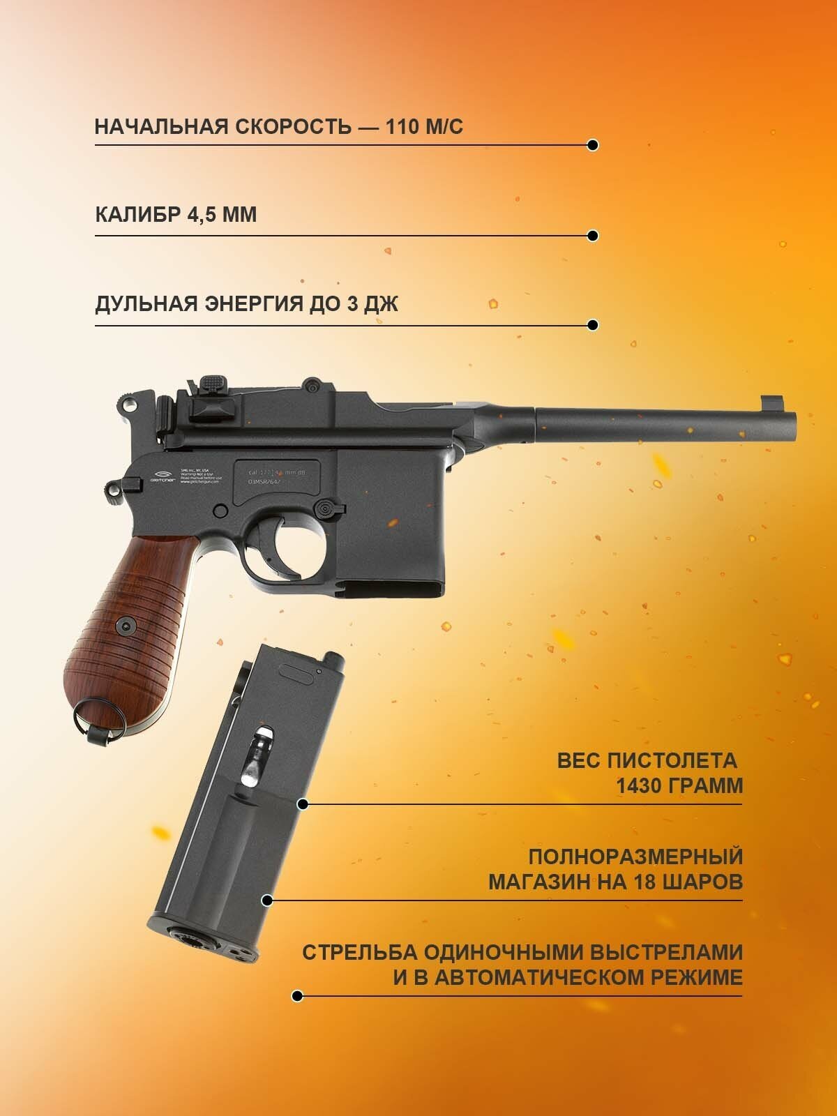 Пистолет GLETCHER пневматический M712 (Маузер) интересное: