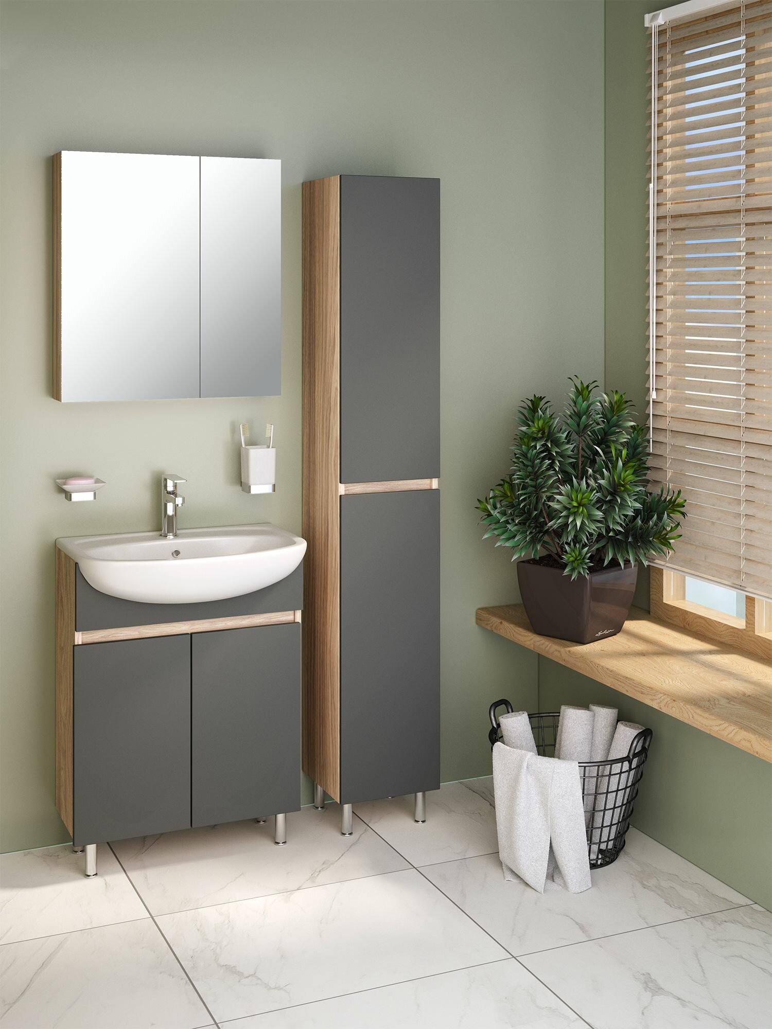 Тумба под раковину / Runo / Лада 60 / графит / под умывальник Уют 60