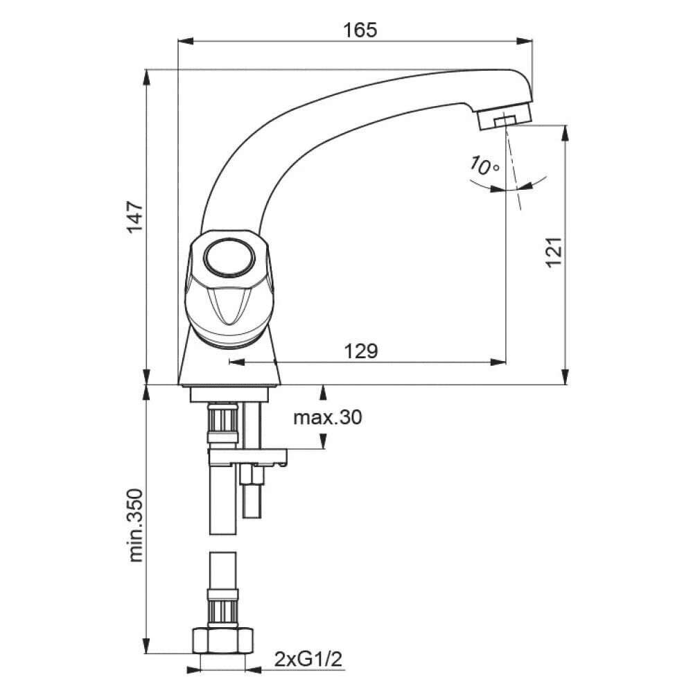 ISKAR Смеситель для раковины, поворотный излив, гибкая подводка 1/2, система монтажа EASY-FIX (облегченный монтаж), J-150mm литой излив, пластиковые рукоятки с индикаторами горячей и холодной воды