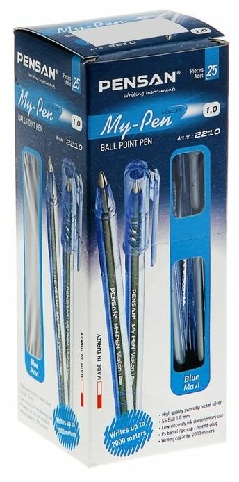 Комплектация 25 шт. Ручка шариковая масляная PENSAN «My-Pen», синяя, корпус тонированный синий, узел 1 мм, линия письма 0,5 мм, 2210