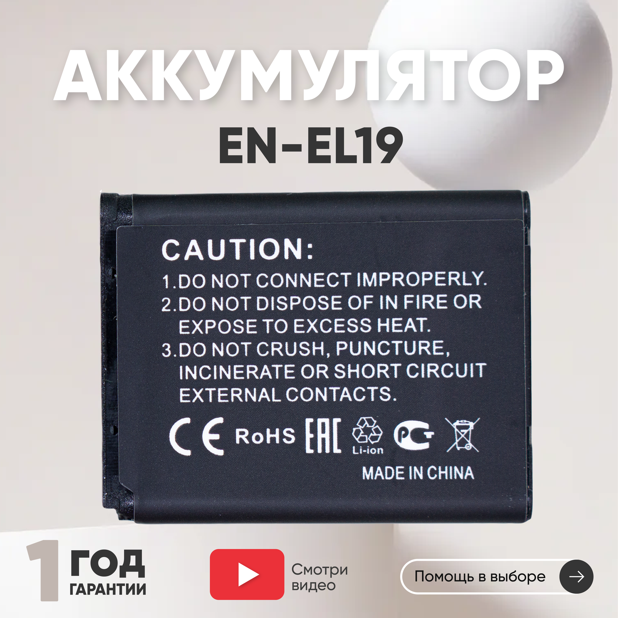 Аккумулятор (АКБ, аккумуляторная батарея) EN-EL19 для фотоаппарата Nikon Coolpix A100, 3.7В, 1200мАч, Li-Ion интересное: