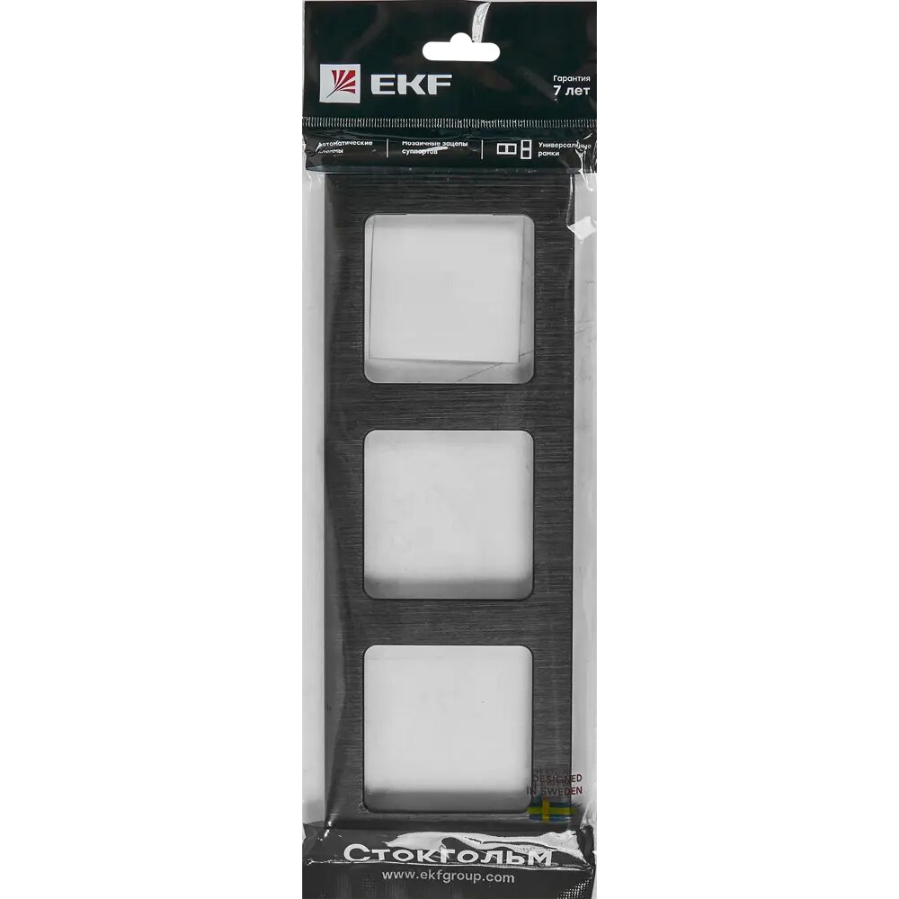 Рамка электроустановочная 3-местная металлическая Стокгольм, черная, EKF PROxima