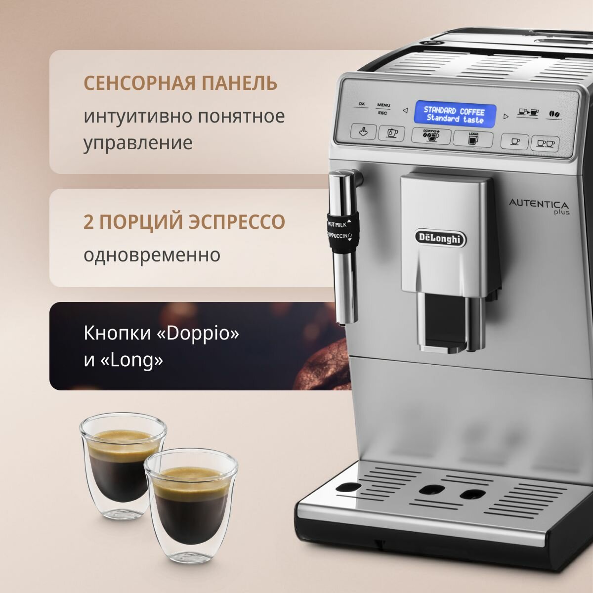 | Минусы: | Слабый подогрев чашек |