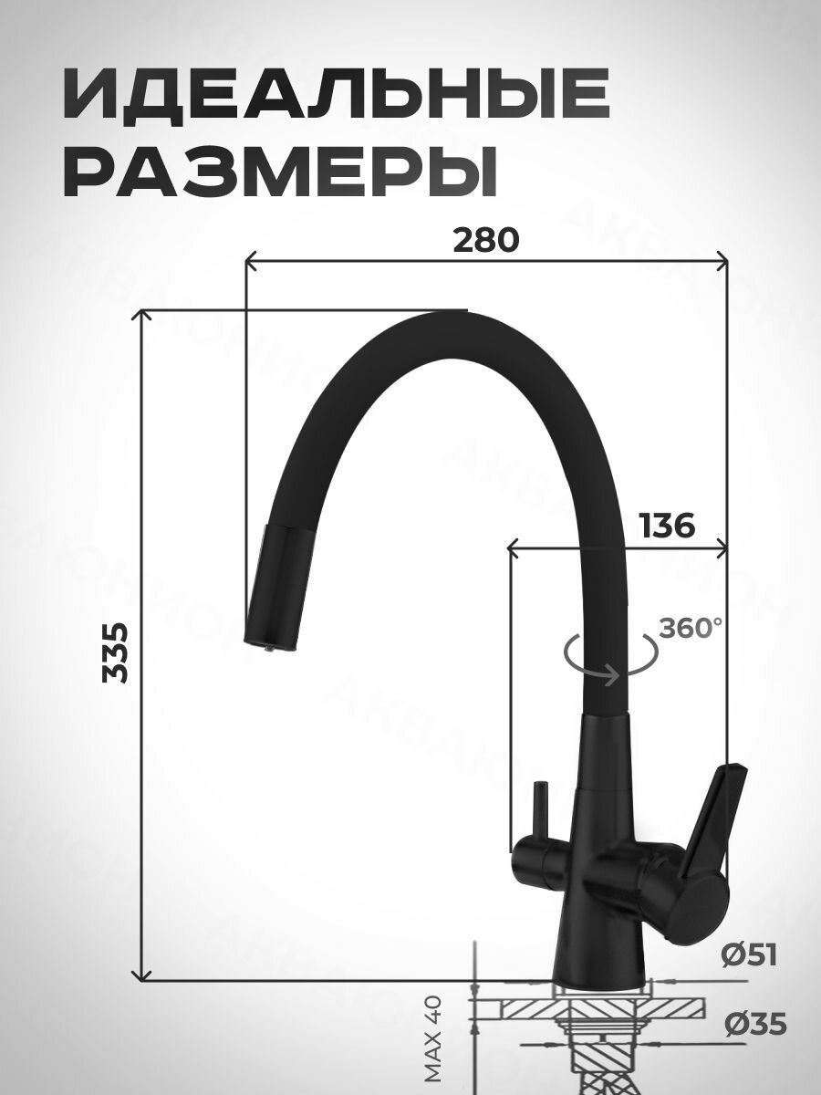 Смеситель для кухни с гибким изливом и подключением фильтра Shevanik S668H, черный
