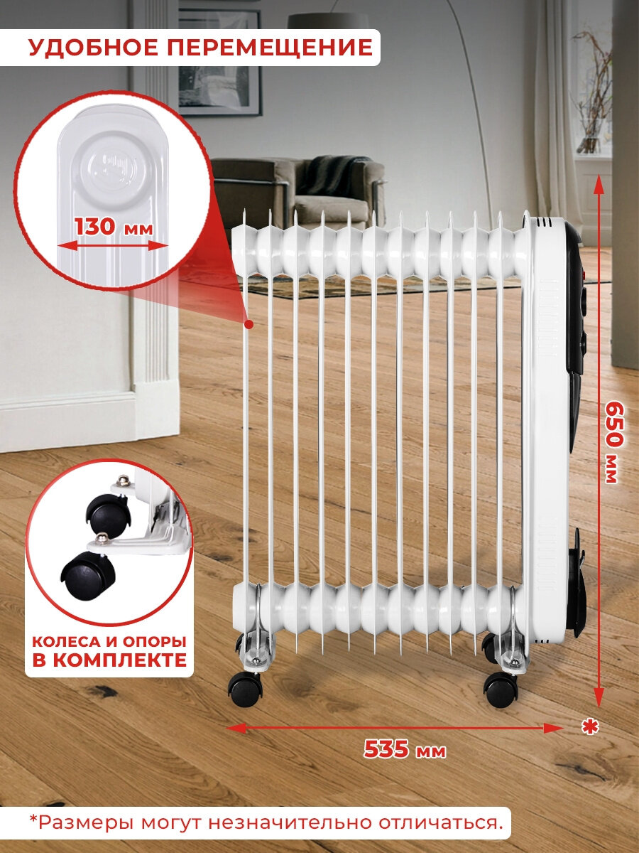 Масляный радиатор Eurolux ОМПТ-EU-7Н, 1.5 кВт, 20 м², колеса в комплекте, белый/черный