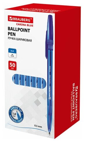 Ручка шариковая BRAUBERG Carina Blue, синяя, корпус тонированный синий, узел 1 мм, линия письма 0,4 мм, BP215, (100 шт.) интересное: