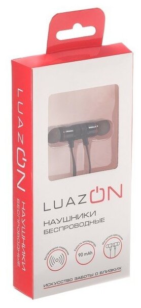 Наушники беспроводные Luazon VBT 1.30, вакуумные, Bluetooth 4.1, 80 мАч, магнитные, чёрно-красные