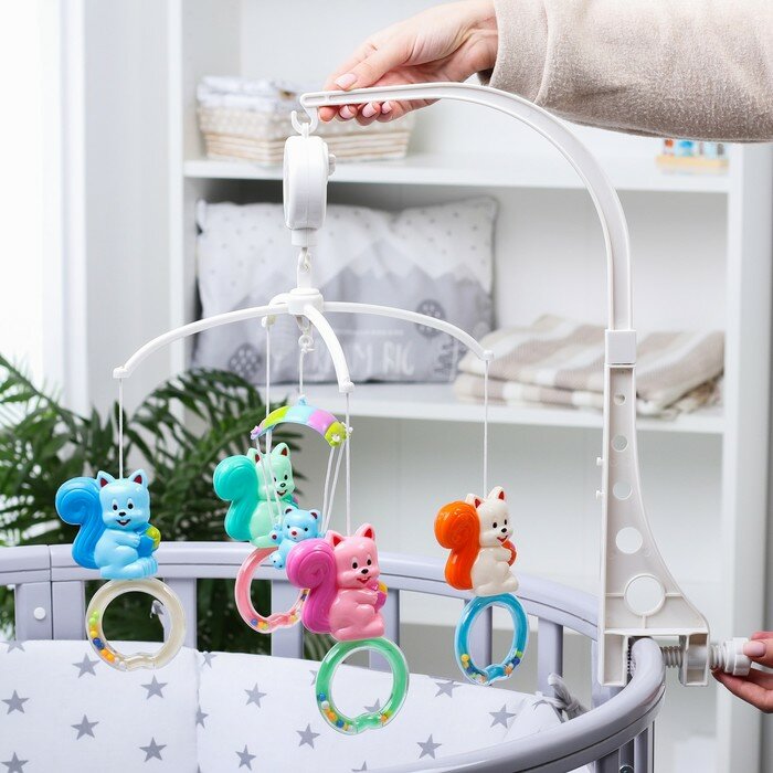 Купить Мобиль музыкальный «Белочки на кольце», заводной, наклейка микс