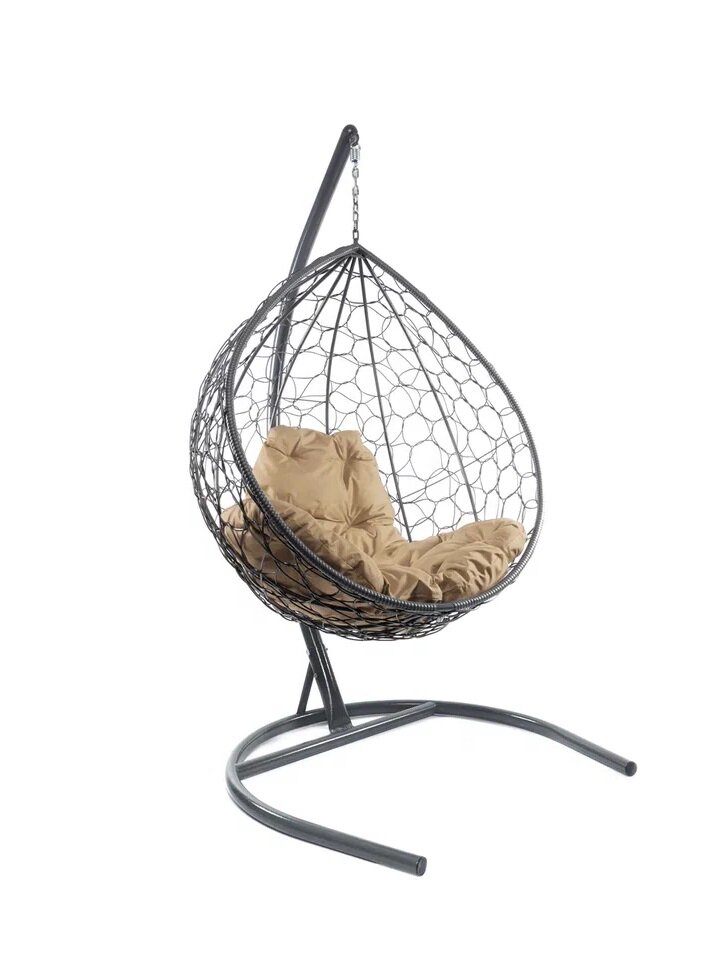 Подвесное кресло капля ротанг серое (без стойки), бежевая подушка