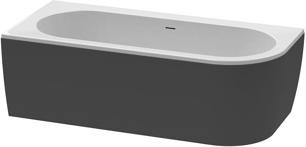 Ванна акриловая Cezares Slim 179х79 см SLIM CORNER-180-80-60-L-NERO-SET со сливом-переливом, белая с черной матовой панелью
