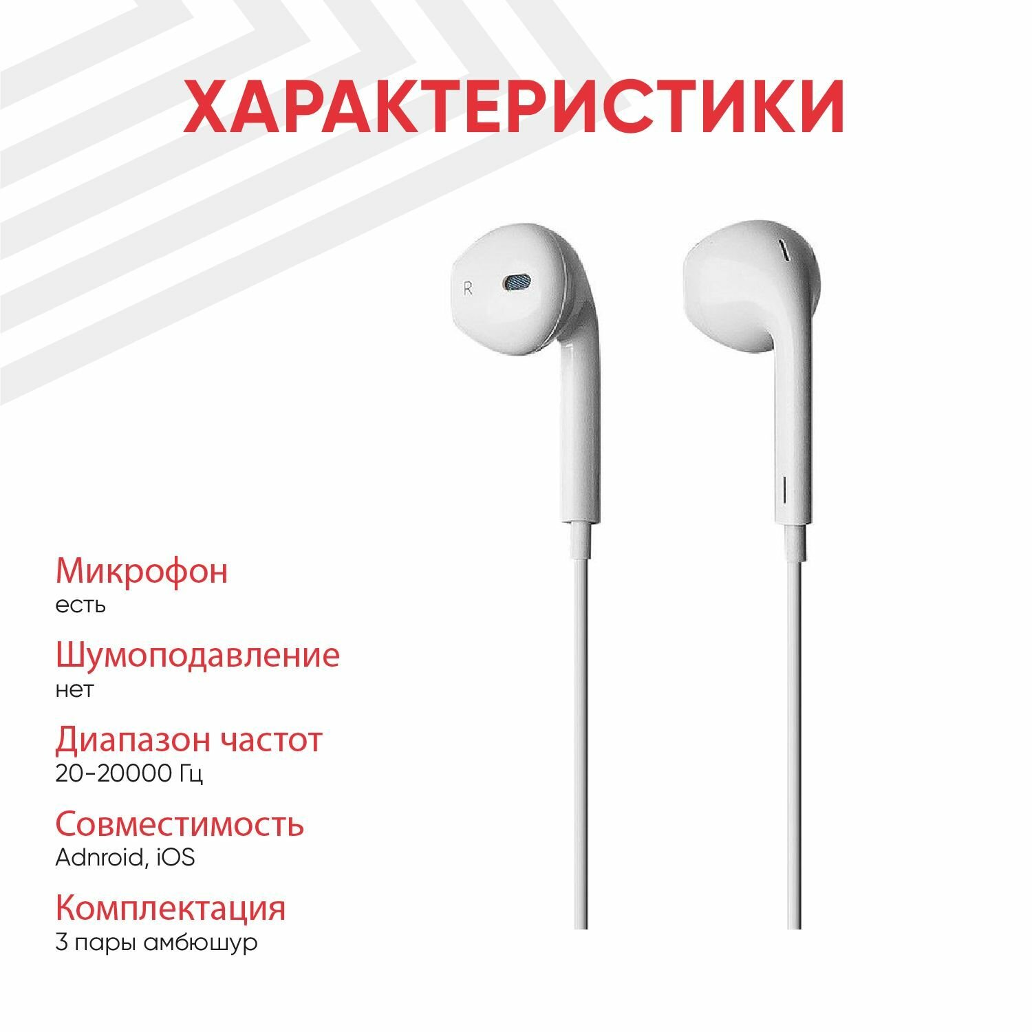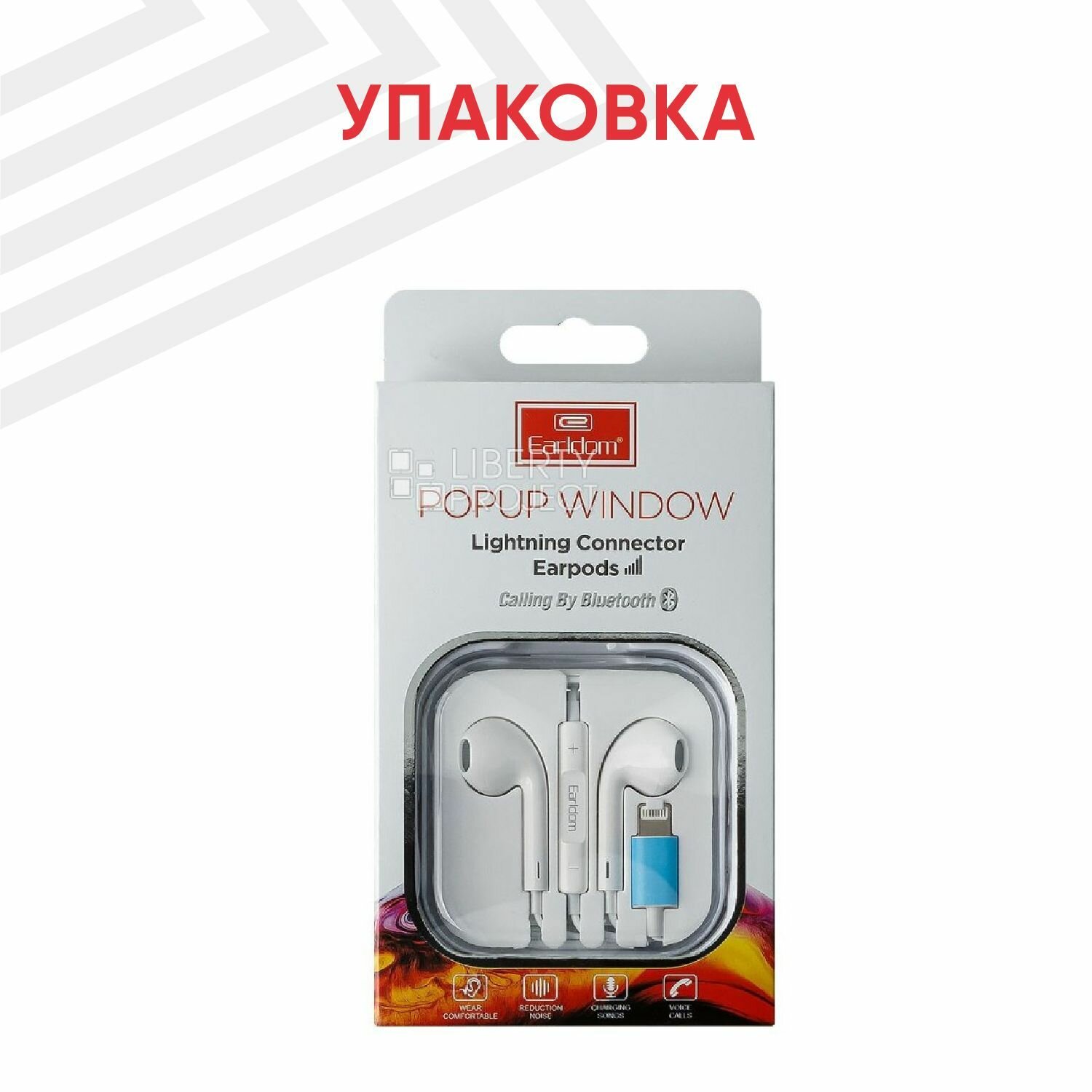 Гарнитура Earldom ET-E21 Lightning 8-pin, громкость +/-, вкладыши, 1.2м (белый)