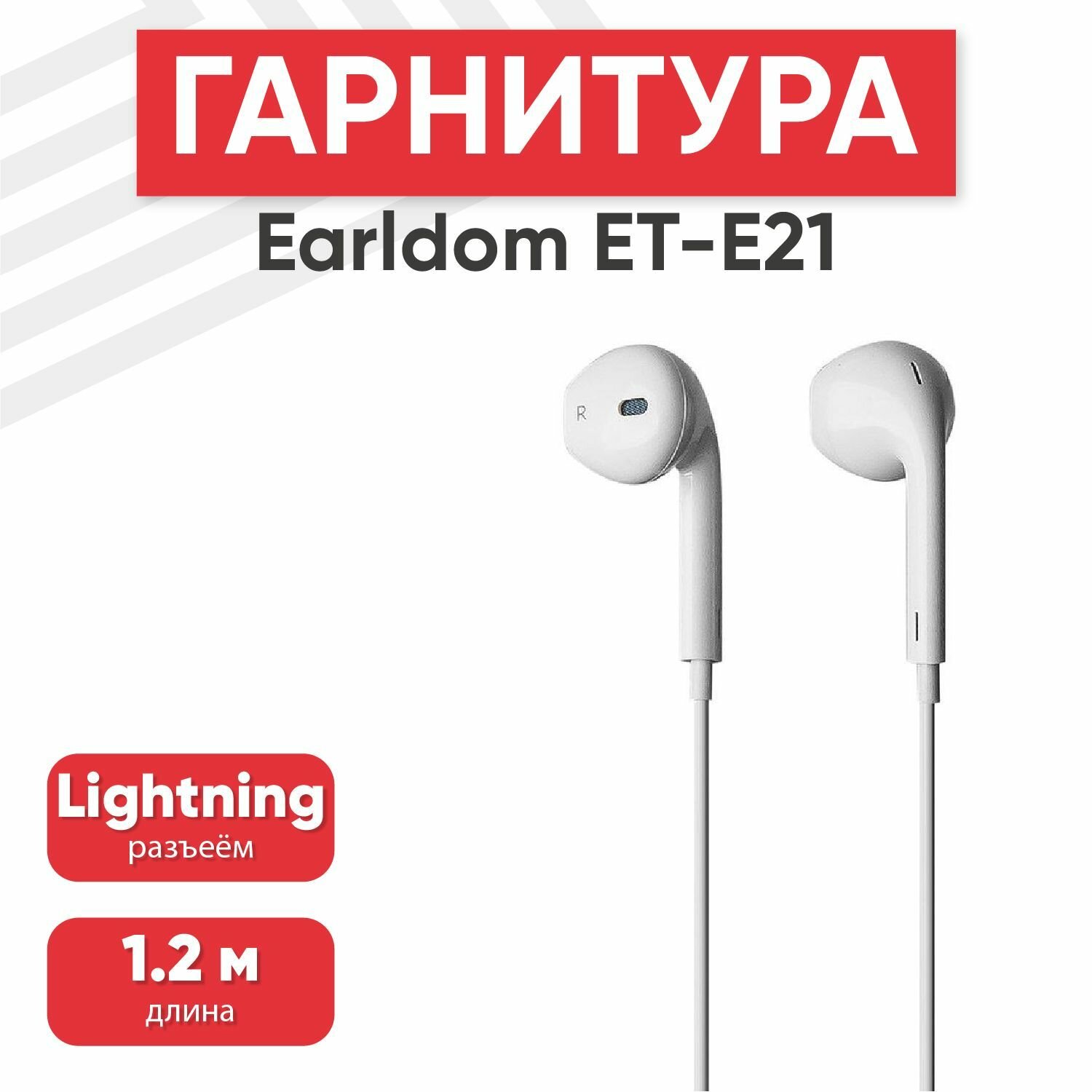 Гарнитура Earldom ET-E21 Lightning 8-pin вкладыши с регулятором громкости 1.2м (белая)