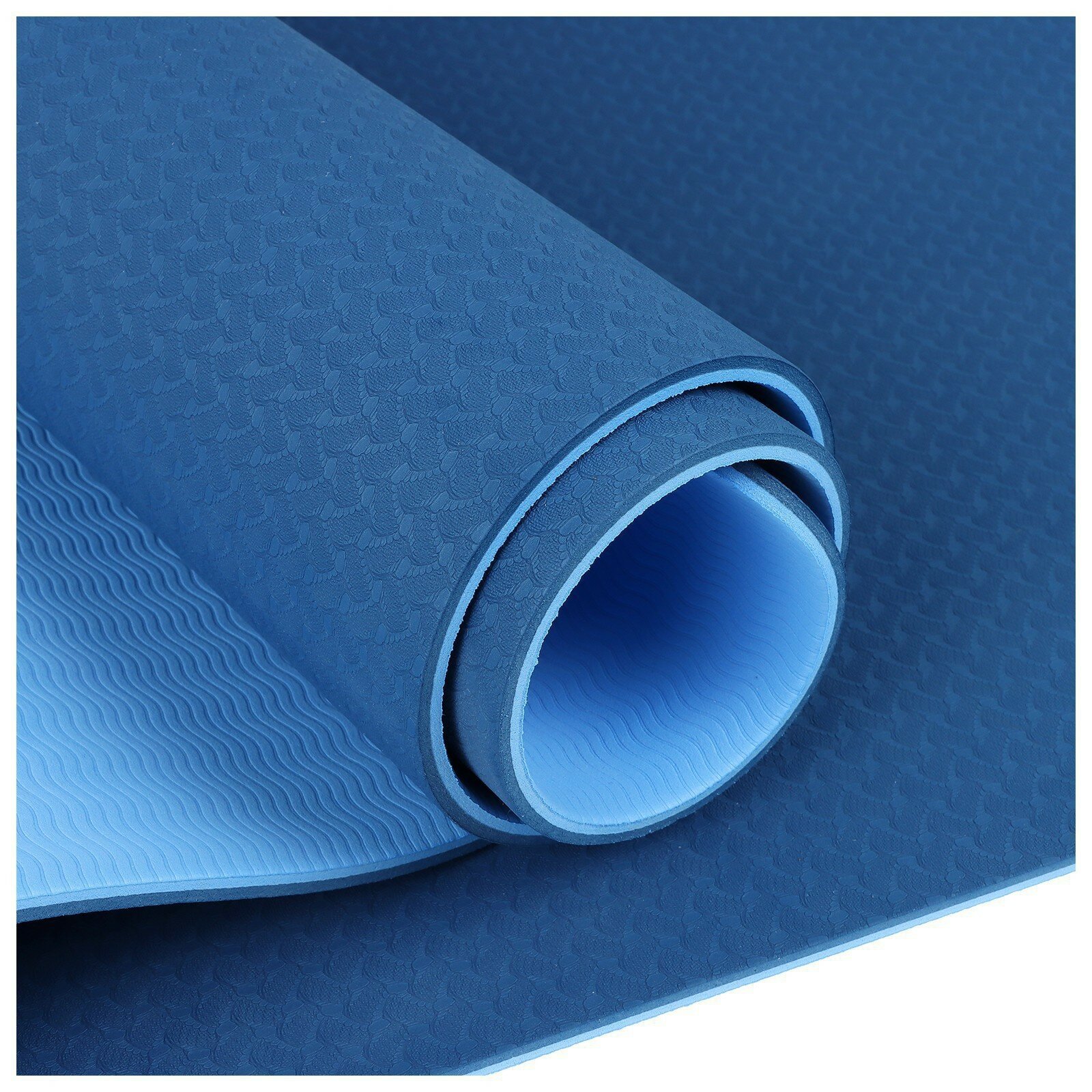 Коврик для йоги 183 х 61 х 0,8 см, двухцветный, цвет синий