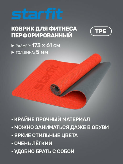 Коврик для фитнеса STARFIT FM-202 TPE 173x61x0,5 см, перфорированный, ярко-красный интересное: