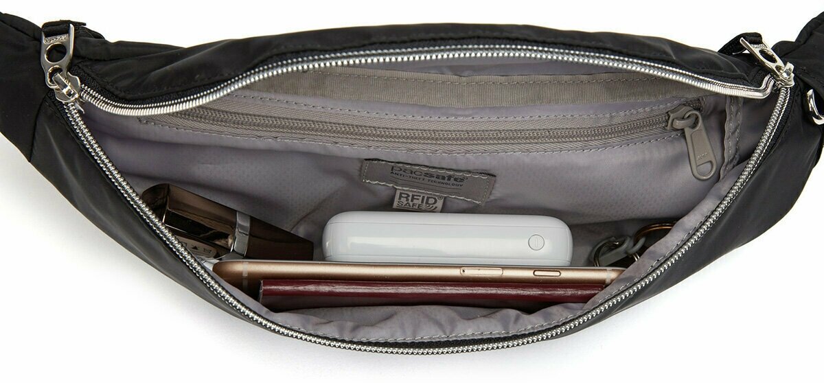 Поясная сумка женская антивор Pacsafe Stylesafe, синий, 2 л. интересное: